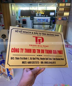 - Thiết kế: Biển tên công ty thường được thiết kế trang nhã, sử dụng màu sắc hài hòa với nhận diện thương hiệu. Các thông tin như tên công ty, logo và địa chỉ liên hệ được in hoặc khắc nổi bật.